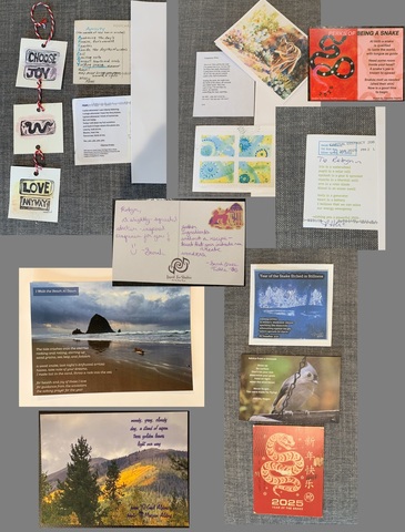 Greetings, Poetry Lovers! This week, I am happy to share the rest of the wonderful New Year Poem Postcard Swap treasures that made their way from many regions of the country to my mailbox. Thank you, Poetry Friends! Our Swap wrangler Jone Rush MacCulloch always invites participants to explore the theme of the Lunar New Year (which buys us a few weeks of sending time!), but that is not a requirement. I'm always delighted to read/see the thoughts, inspirations, and clever creations folks come up with. It's a great way to start a new year, maybe this one more than ever. (And we get to enjoy the word, 'Apricity'!) Enjoy!