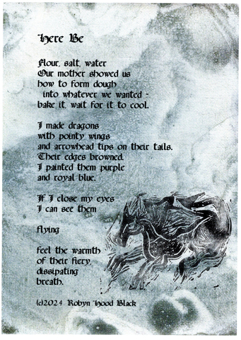 I'm happy to share the rest of the postcards I've received as part of the New Year Poetry Postcard Swap, organized by Jone Rush MacCulloch. Participants send these wonderful greetings any time after January 1 through the Chinese/Lunar New Year (February 10 this year). Poems and images may or may not include the animal for the year, which is currently the Wood Dragon. (My post last week featured my own postcard, and on January 25, I featured the first three I received.)