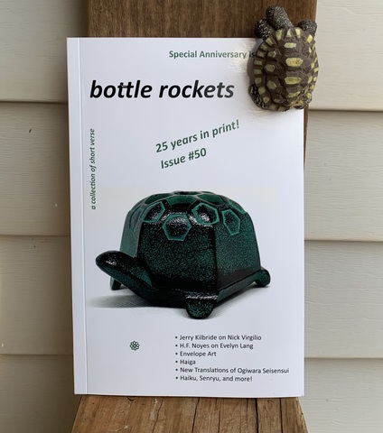bottle rockets, it's a well respected print journal of haiku, senryu, & short verse published by Stanford M. Forrester, whom you've met here before! In addition to the journal, he also offers specialty letterpress printing services through