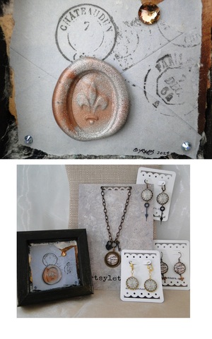 I altered a wax seal that came with an order and used it inside a little book I made last week for an online workshop. I know there are many mixed media artists among us; if that means you and you don't know of him already, I highly recommend Seth Apter as an instructor and curator of many enticing items in his online shop. (When I started my artsyletters business more than a decade ago, I stumbled upon his books and videos.)