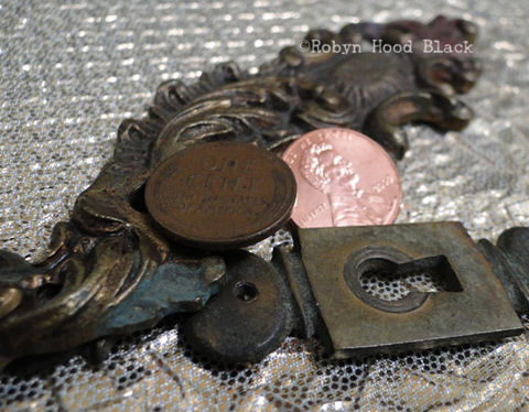 I had verdigris on my mind this spring, having recently turned in my batch of writing for the Core Essentials Character Education Curriculum I've been contributing to for many years. I handle the animals, colors, and quotes corresponding to each monthly value. Often I suggest/pick these items too, and this year I tossed in "verdigris." I've always been enchanted by that variegated blue-green sheen over metal. (And it wasn't hard to find a bit in my studio, either!)